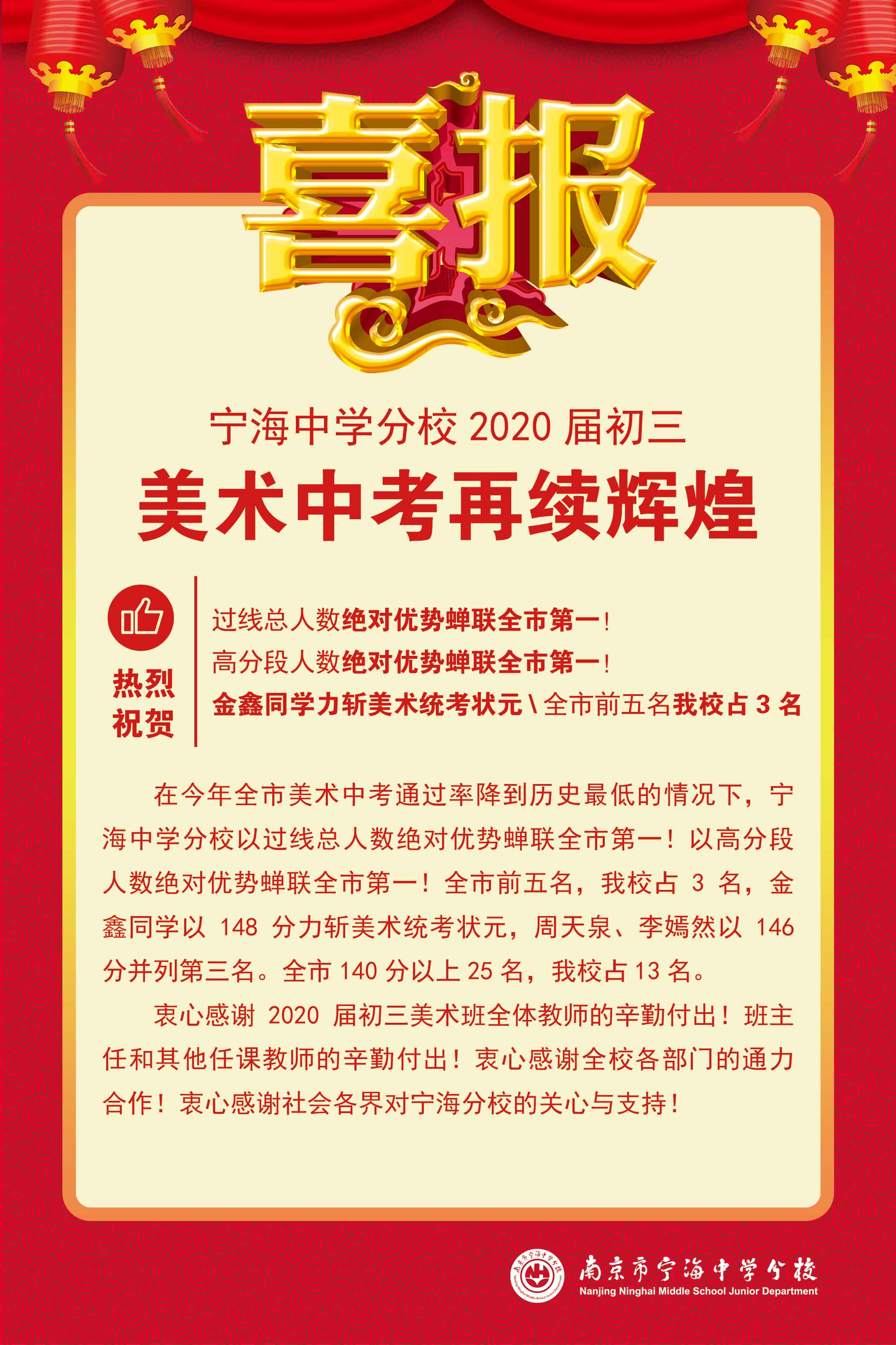 喜報(bào):甯海(hǎi)中學分(fē★₹'→n)校(xiào)2020屆初三美(měi)術(shù)中考♥♣σ再續輝煌