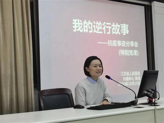 陳倩同志(zhì),一(yī)位有(yǒu)著(zhe)20年(n•γián)黨齡的(de)中共黨員(yuán),江蘇省人(rén)民(mín)醫(y¥§ ∞ī)院內(nèi)鏡中心主管護師(shī),首批參加援助湖(₽∞ hú)北(běi)新冠肺炎疫情的(de)黨員(yuán)之一(yī),是♣(shì)這(zhè)堂特别的(de)黨課的(deπ₽)主講人(rén)。