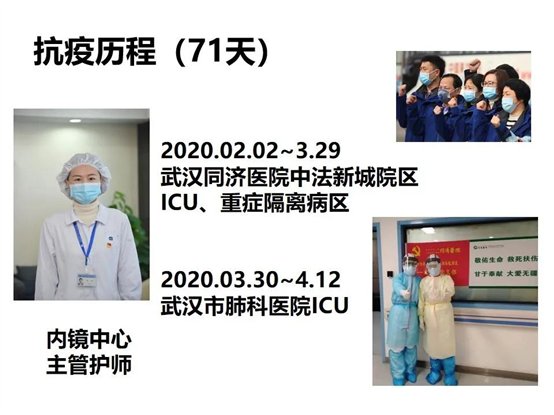 2020年(nián)2月(yuè)2日(rì)到(dà $&o)3月(yuè)29日(rì),陳倩同志(zhì)奮戰在武漢同濟醫≥™× (yī)院中法新城(chéng)院區(qū) ICU和(hé)重症隔離(lí)病區(qū)≤¥'σ。