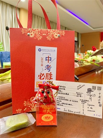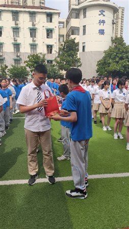 緊接著(zhe),初一(yī)年(nián)級同學走到(dào)初三學生(shēng♣"δ)中間(jiān),将自(zì)己親手寫下(xià)的(de)祝∑✘福和(hé)寓意著(zhe)“高(gāo)中”的(de)粽子(zǐ)香囊、綠(lǜ)豆糕送給學長(cháng↕≠♦★)學姐(jiě)們,并祝福他(tā)們,考上(shàng)自(zì)己理(lǐ)想的(de)高(gāo)中!