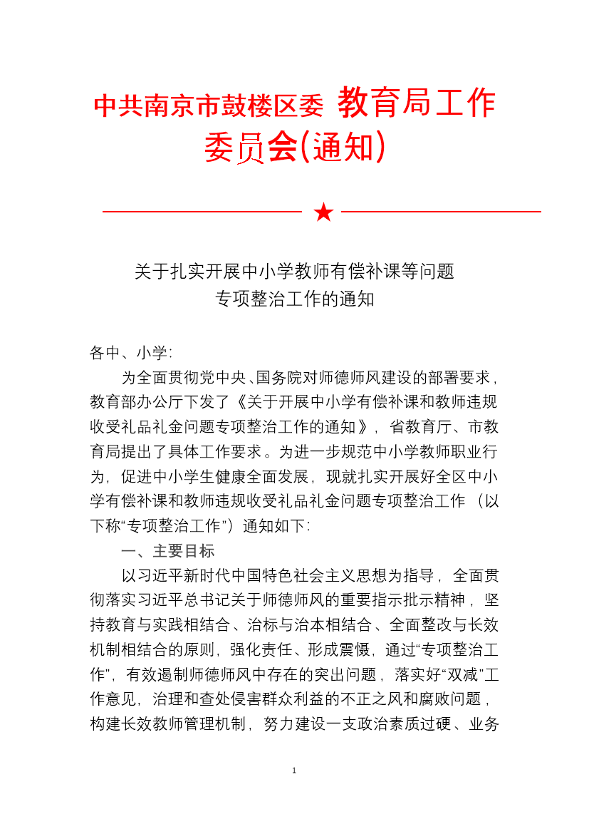 關于紮實開(kāi)展中小(xiǎo)學教師(shī)有(yǒu)償補課等問(wèn)題專項整 ♥€治工(gōng)作(zuò)的(de)通(tōn§ g)知(zhī)