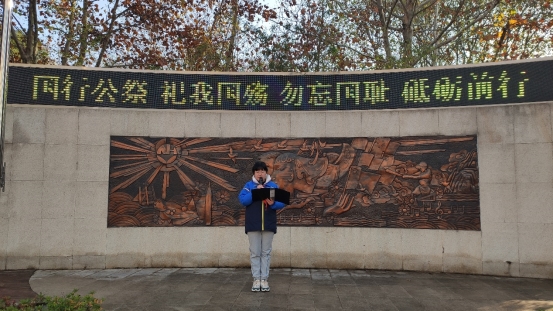 初二(6)班的(de)王陳熙同學用(yòng)铿锵有(yǒu♥♦€≈)力的(de)朗誦,向大(dà)家(jiā)宣告:銘記曆♦λ★>史,勿忘國(guó)恥!