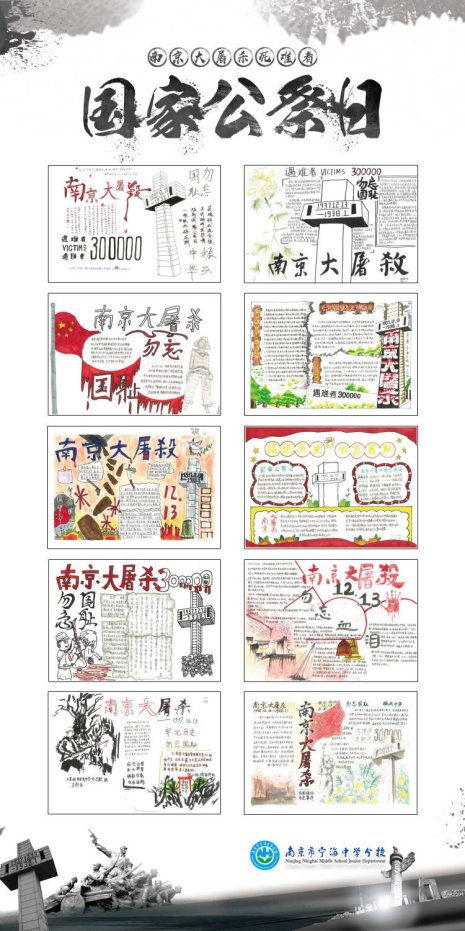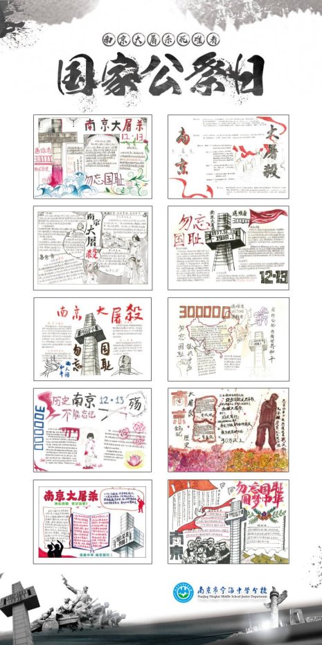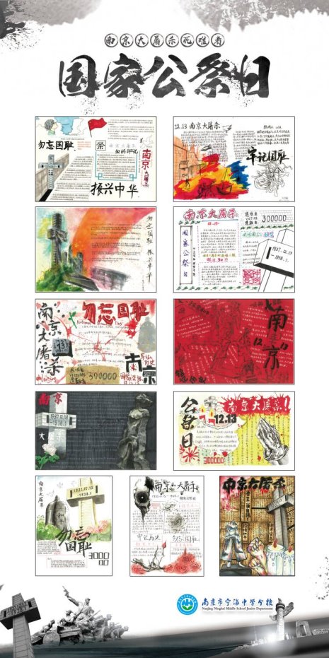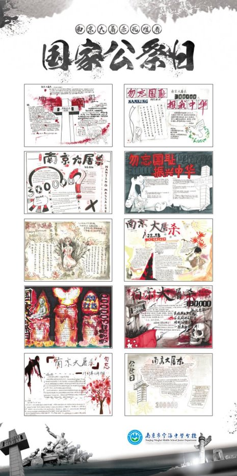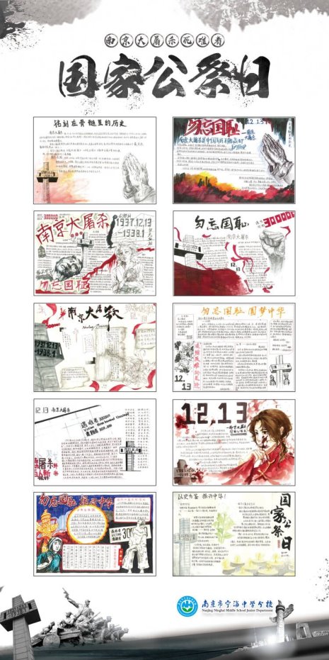 在曆史組的(de)組織下(xià),初二年(nián)級學生(shēng)們設計(jì)制(zhì)作(zuò)了(le)“國(guó)家(jiā)公祭日(rì)”主題小(xiǎo)報(bào)。